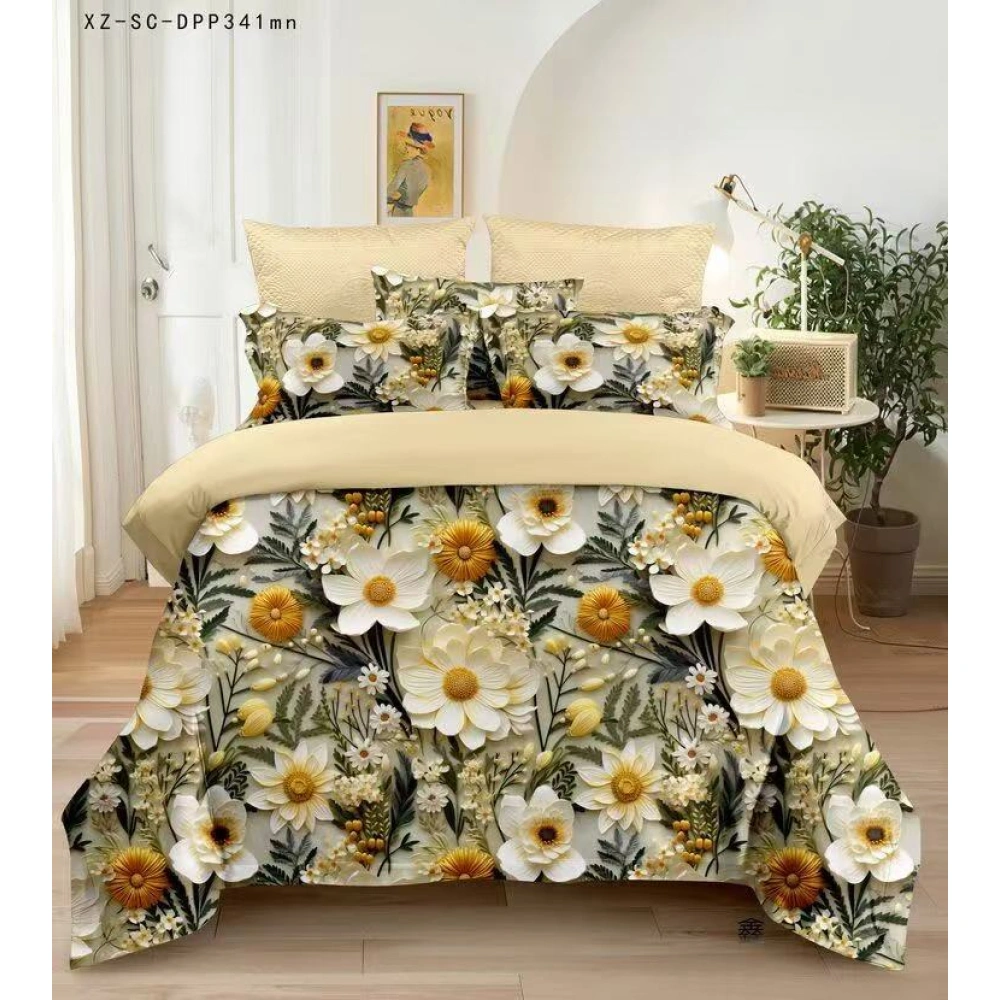 Descoperiți această lenjerie de pat cu design floral deosebit, în tonuri de galben și alb, care aduce o poezie florală în camera dumneavoastră! Oferă un cadru fermecător, ca o floare lebădă plină de viață, transformând dormitorul într-un paradis de stil și confort. Fiecare noapte va fi o călătorie în midstul unei grădini exotice. Alegeți magia florilor pentru un somn mereu inspirat!